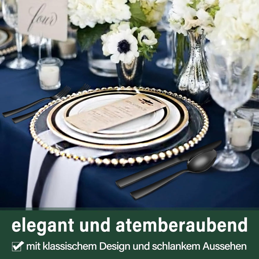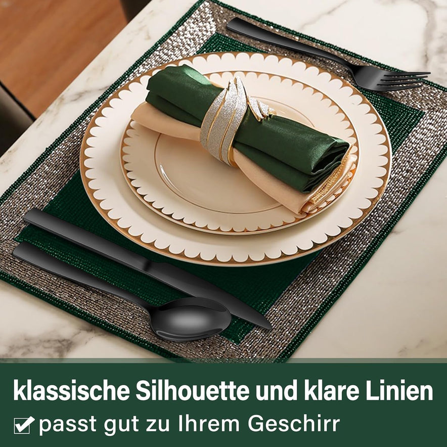 Terlulu 36-teiliges schwarzes Besteckset mit Steakmesser besteht aus hochwertigem 18/0 Edelstahl, das sich nicht verbiegt, bricht oder durch Hitze beschädigt wird. Dieses elegante Besteck-Set wird Ihre täglichen Mahlzeiten zu einem feinen kulinarischen Erlebnis machen.