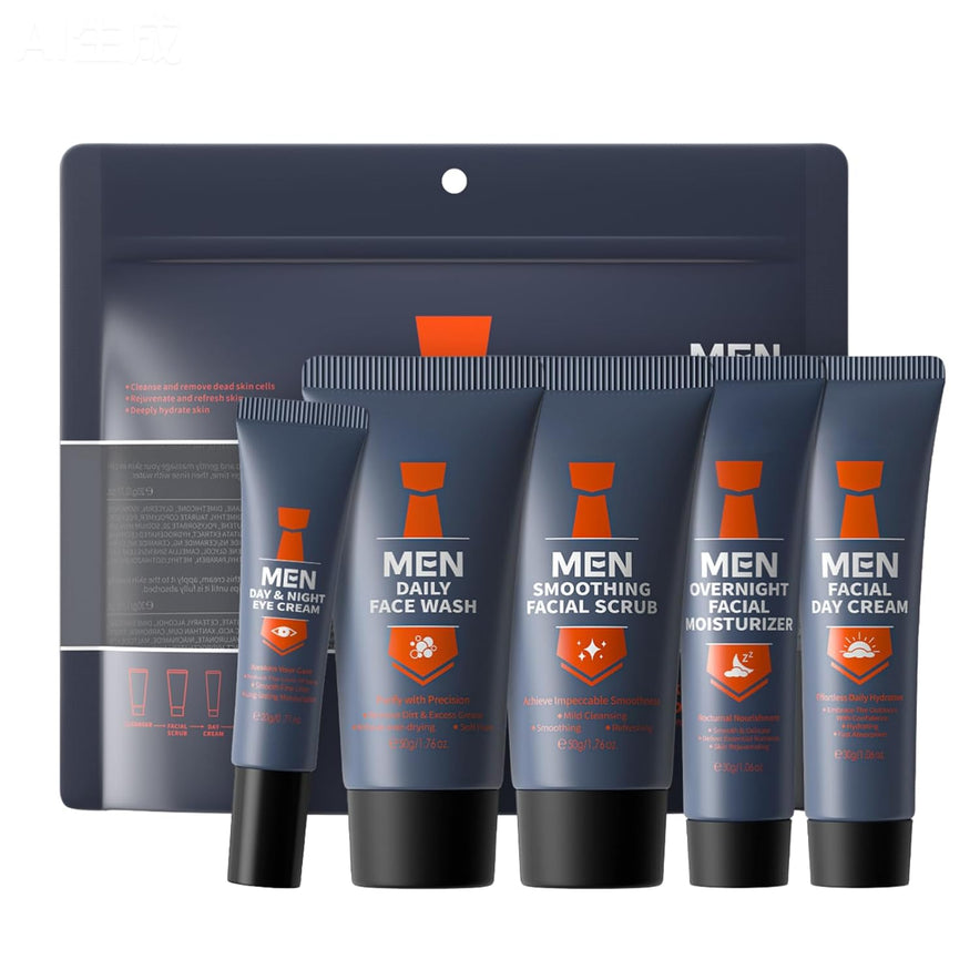 -25%5-Teiliges Gesichtspflege Männer Set, Pflegeset Männer Mit Gesichtsreiniger,Peeling,Augencreme,Tagescreme&Feuchtigkeitscreme, Skincare Set for Glättet&Reduziert Falten, Perfektes Geschenk Für Männer