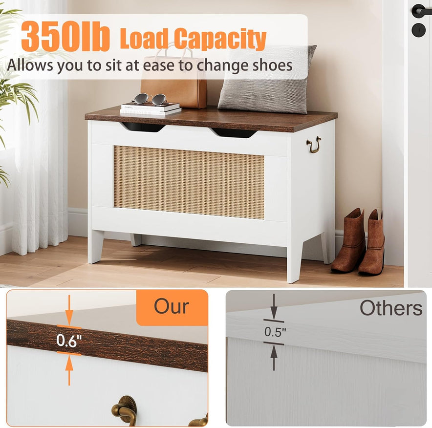 76Cm Sitztruhe Aufbewahrungsbank Aus Holz, Sitzbank Mit Stauraum Mit 2 Sicherheitsscharnieren, Multifunktionale Schuhbank Für Flur, Wohnzimmer, Schlafzimmer