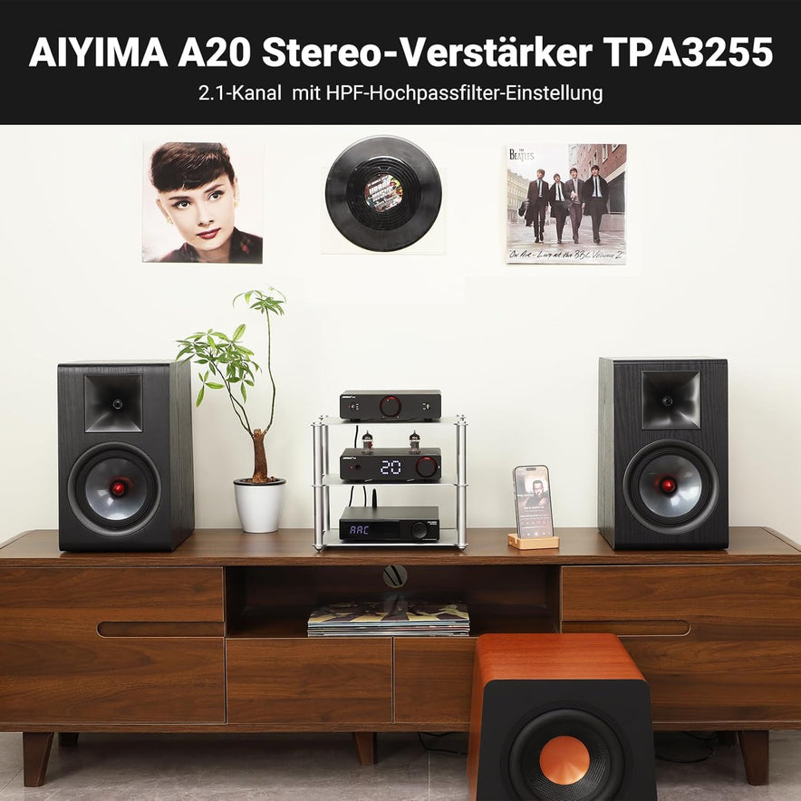 AIYIMA A20 Symmetrischer Stereoverstärker Mit Hpf-Einstellung Home Hifi 2.0/2.1 TPA3255 Desktop-Verstärker Der Klasse D PFFB Mit Cinch-/Xlr-Eingang Und 12-V-Trigger-Eingang Für Passive Lautsprecher