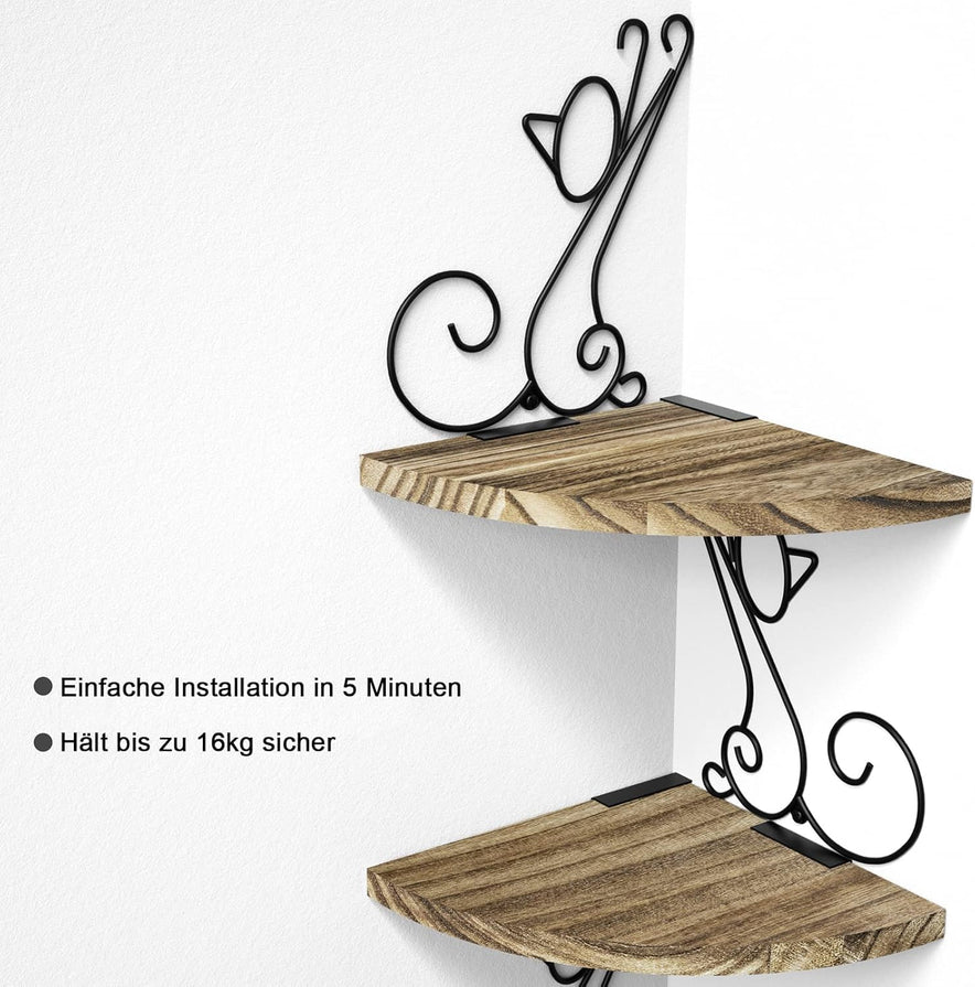 Alsonerbay Eckregal, Wandregal Vintage Aus Massivholz, Katzenform, Schweberegal Dekor Für Wohnzimmer Schlafzimmer Küche Büro, 4 Regalböden, Braun