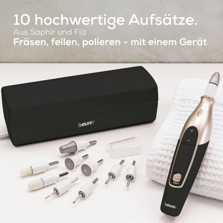 Beurer MP 84 Special Edition Maniküre-/Pediküreset, Elektrische Nagelfeile Mit Akku, 10 Aufsätze, Led-Licht, Inkl. Aufbewahrungsetui, Bis Zu 4400 U/Min, Nagelfräser Zur Hand- Und Fußpflege, Schwarz