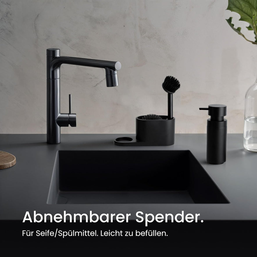 Blackswedenhome. Design Spülbecken Organizer Mit Entnehmbaren Spülmittelspender Spülbürste Und Schwamm - Küchenorganizer - Spüle Organizer Aus Kunststein Sink Spül Set Seifenspender Schwarz Matt