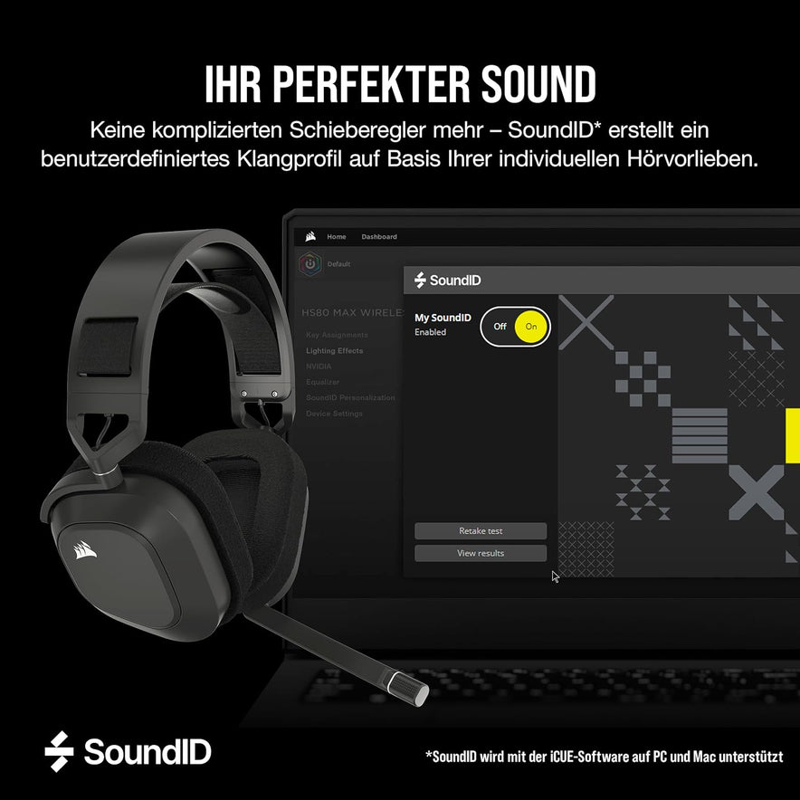 - Paketinhalt: CORSAIR HS80 MAX WIRELESS Headset - Stahlgrau | Drahtloser USB-Empfänger | USB-Ladekabel, 1,8m | Sicherheitsdatenblatt | Garantiekarte | CA-9011295-WW