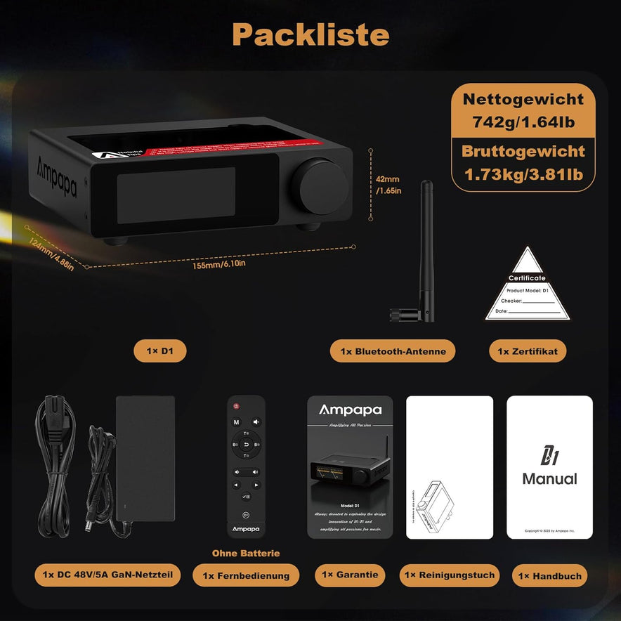 Verstärken Sie Ihre Leidenschaft – Nach drei Jahren engagierter Handwerkskunst präsentiert Ampapa stolz sein zweites Meisterwerk: den digitalen Verstärker D1. Er verbindet nahtlos die Vintage-Wärme des A1 mit der leistungsstarken Performance des D1 und hebt Ihr Hörerlebnis auf ein neues Niveau.