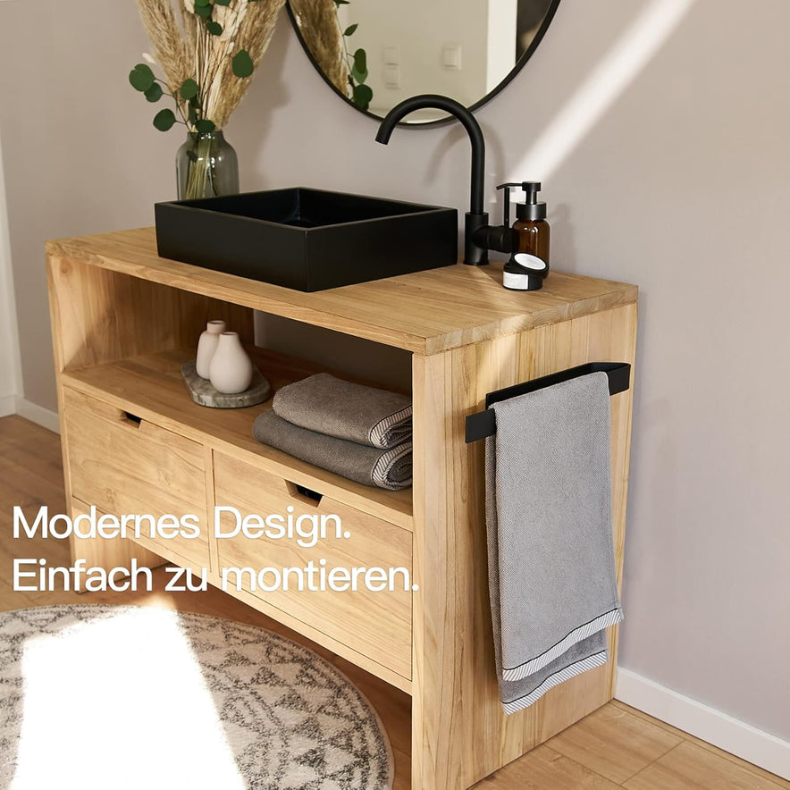 - ☑️ Universell einsetzbar im Bad an Wand und Waschtisch, im Gäste WC für Gästehandtücher und als Geschirrtuchhalter Küche. Problemlos auf jeder glatten, beständigen Oberfläche anzubringen.