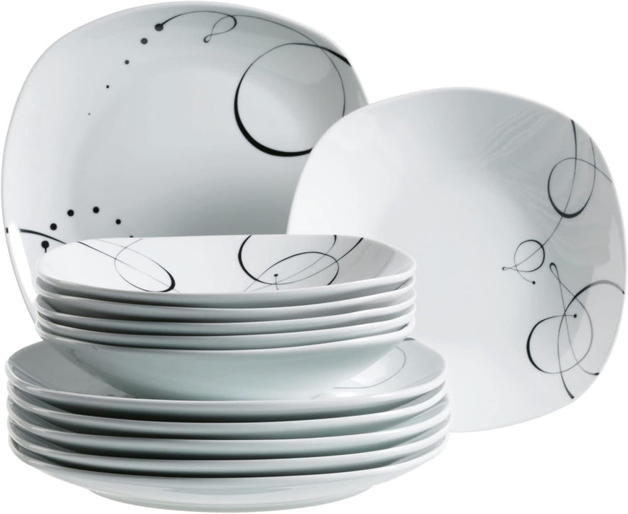 Domestic by Mäser, Serie Chanson, Tafelservice 12-Teilig, Für 6 Personen, Weiß