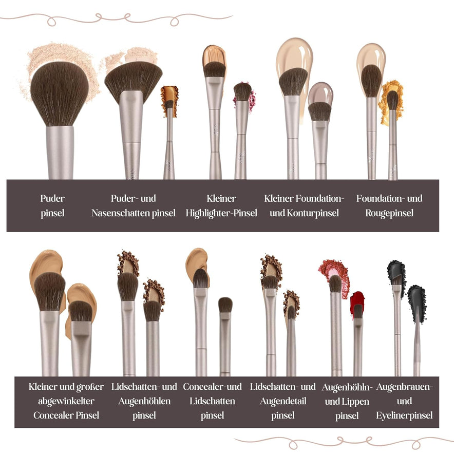 Doppelseitiges Make up Pinsel Set 11-Teilig – Schminkpinsel Für Foundation, Puder, Concealer, Highlighter, Contour, Lidschatten & Rouge – Synthetische Borsten
