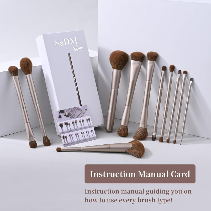 -25%Doppelseitiges Make up Pinsel Set 11-Teilig – Schminkpinsel Für Foundation, Puder, Concealer, Highlighter, Contour, Lidschatten & Rouge – Synthetische Borsten