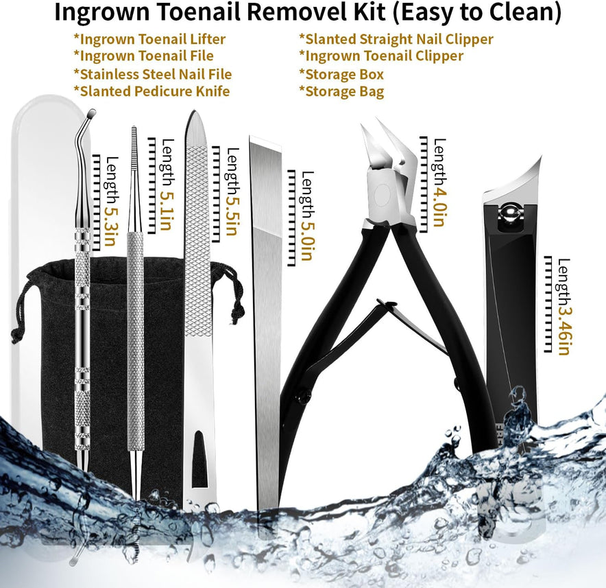 - Professionelle Pediküre-Werkzeuge: Unser Zehennagel-Set ist ein Kit zur Entfernung eingewachsener Nägel in Profi-Qualität. Es bietet erstklassige Werkzeuge für die Fußpflege, insbesondere zur Behandlung eingewachsener Zehennägel, und enthält alle notwendigen Instrumente für eine vollständige Pediküre.