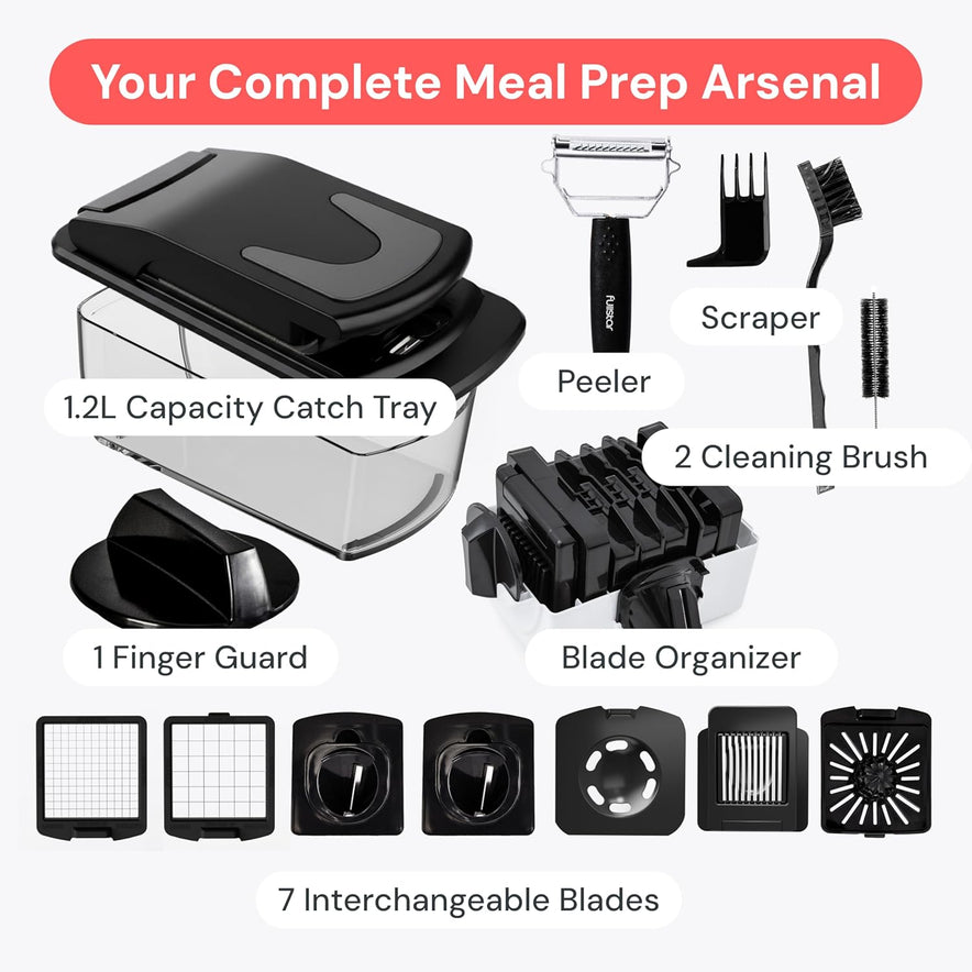 Fullstar Gemüseschneider Und Spiralschneider - Zwiebelschneider Zerkleinerer - Gemüse Schneider Würfelschneider Für Kartoffeln Gurken Früchte - Küchenzubehör Und Küchengeräte (PRO 9-In-1, Schwarz)