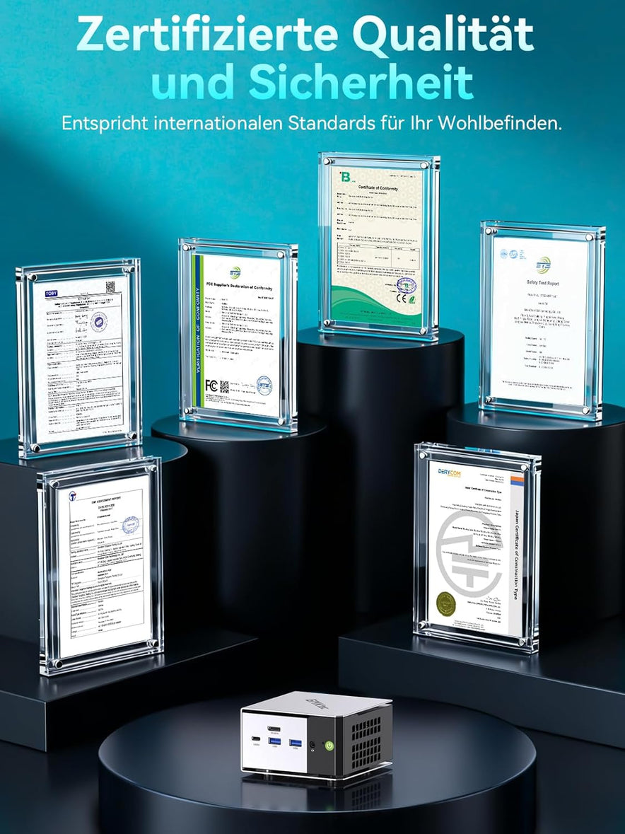 - GMKtec GARANTIE – GMKtec bietet eine 2-jährige eingeschränkte Garantie für jeden Mini PC, beginnend ab dem Kaufdatum. Alle Defekte aufgrund von Design und Verarbeitung sind abgedeckt. Mit einem professionellen After-Sales-Team, das immer bereitsteht, können Sie sich entspannt zurücklehnen und Ihren Mini PC genießen.