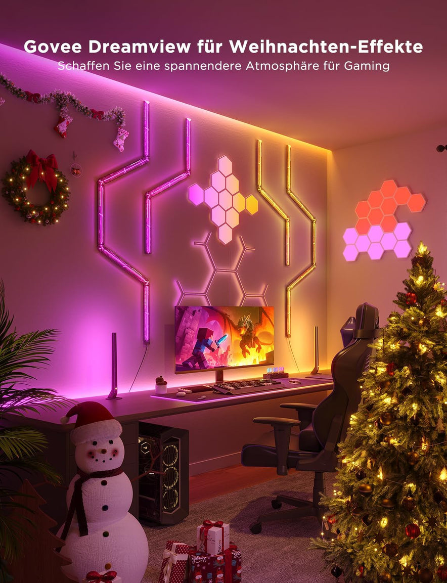 - Reichhaltige belebte Effekte: Wählen Sie aus Szeneneffekten basierend auf Natur, Feiertagen und mehr. Die Govee Home App erkennt intelligent die Position von Gaming LED Panels für nahtlos fließende regenbogenartige Effekte über Ihr gesamtes Design.