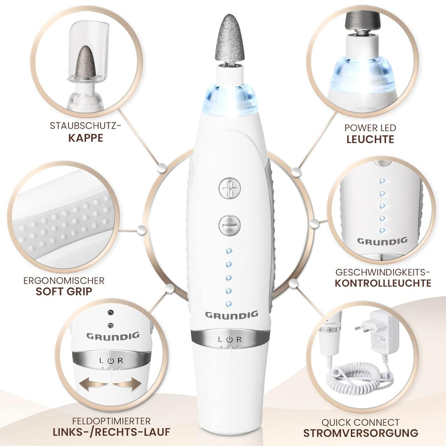 -25%GRUNDIG Maniküre Set Elektrisch - Schöne Nägel Dank Power LED Und 17Tlg Saphir Zubehör Pediküre Fußpflege Set & Maniküre Set Mit Zubehör Nachbestellmöglichkeit Elektrische Nagelfeile (Maniküre Set V2)