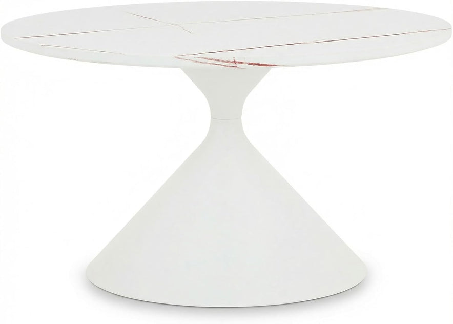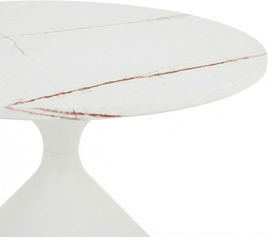 - Stilvolles Design in Steinoptik: Die Kombination aus weißer Steinoptik und matt pulverbeschichtetem Metall macht den runden Wohnzimmertisch zu einem echten Blickfang