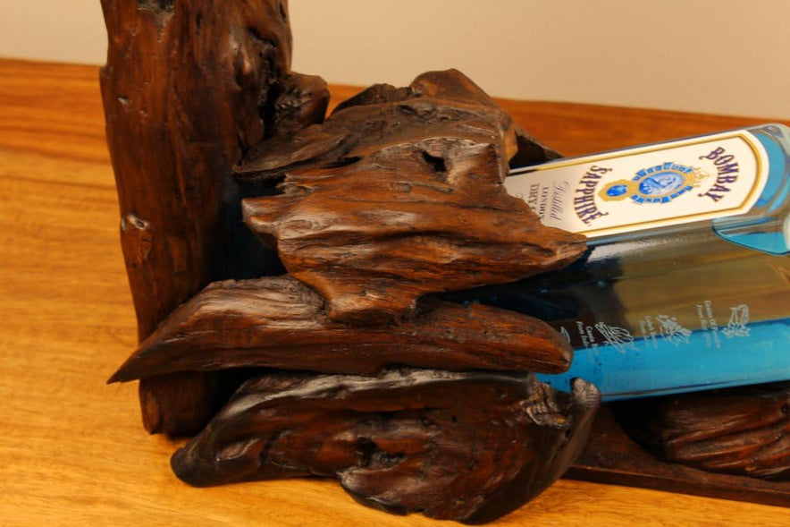 - Unikate mit Charakter – Jedes Flaschenregal ist ein handgefertigtes Einzelstück. Die Kombination aus naturgewachsenem Wurzelholz und massiver Platte macht jedes Exemplar einzigartig.