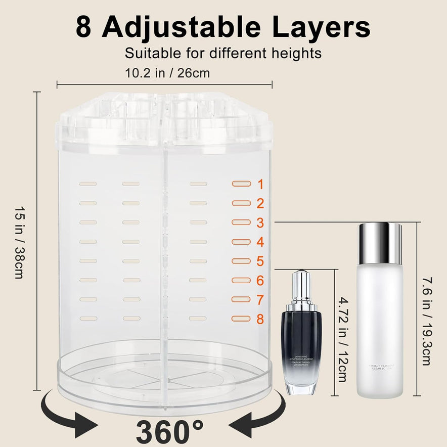 Make up Organizer, 360 Grad Drehende Justierbare Schmucksachen Und Kosmetischer Ausstellungsstand, 8 Schichten Bilden Aufbewahrungsbehälter - Kristallklar