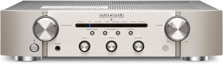 Marantz PM6007 Hifi Verstärker, Stereo Verstärker, 2X60W, Optischer Eingang, Phono Eingang, Subwoofer Ausgang, Silber-Gold