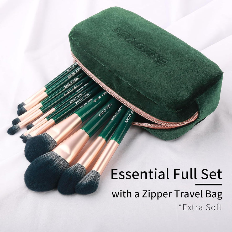 -25%Naturfaser Und Ziegenhaar Make-Up Pinsel Set Professionell - Kombinierte Haar Kosmetikpinsel Mit Handtasche, Grün - Natürliche Pinsel - Moyu