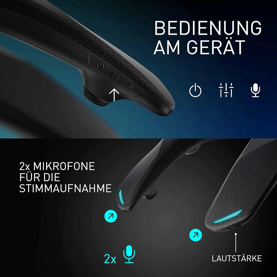 - EFFIZIENTES ARBEITEN VON ZUHAUSE: Der GNW30-Nackenlautsprecher hat zwei Mikrofone mit KI-Rauschunterdrückung für klare Telefonate, taktile Bedienelemente und intuitive LED-Beleuchtung