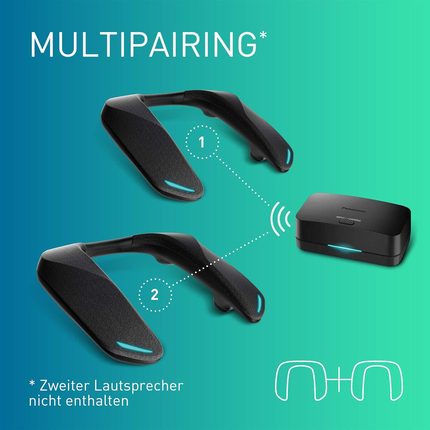Panasonic SC-GNW30 Kabelloser Heimkino Nacken-Lautsprecher Surround Sound System Mit Integriertem Mikrofon; HDMI 2.1, USB, Bluetooth 9H Akkulaufzeit, Kompatibel Mit TV, PC, Macos, Ps4/Ps5/Switch/Xbox