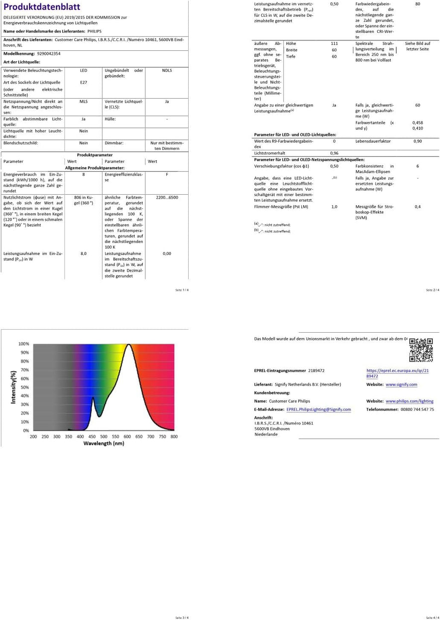 Philips Hue Essential Smart LED A60 Glühbirne,White and Color, E27-Fassung, 8 W, 2200 K–6500 K, 806 Lm, Dimmbar, Kompatibel Mit Alexa, Google Assistant Und Apple Home, 4Er-Pack