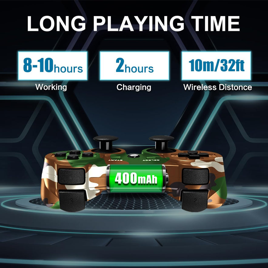 - Immersives Spielerlebnis: Erleben Sie das modernisierte Design des PS3-Controllers in Camo Red & Camo Green. Spielen Sie mit Ihren Freunden oder Familie, betreten Sie die Spielwelt zusammen, genießen Sie mehrere Freuden. (Hinweis: Bitte aktivieren Sie das Gerät mit USB-Kabel für die erste Übereinstimmungsverbindung)