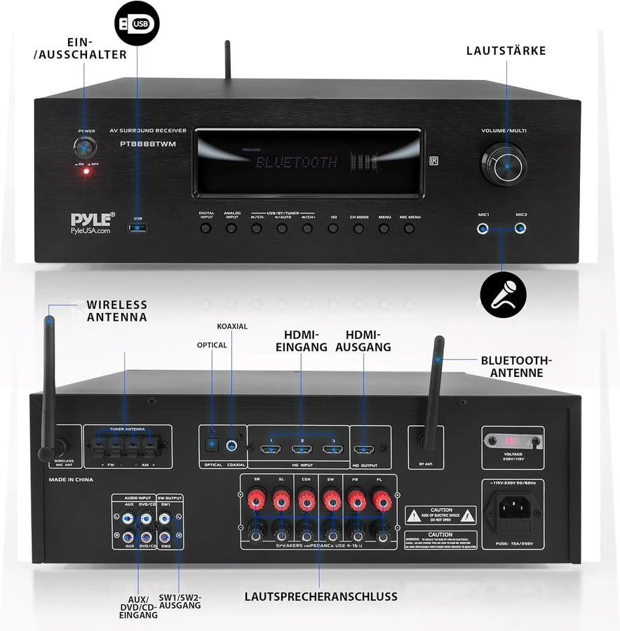 - BLUETOOTH-KONNEKTIVITÄT: Streamen Sie kabellos Musik über integriertes Bluetooth – kompatibel mit Smartphones, iPhone, iPad und Computern. Einfache Receiver-Kopplung für stabile Verbindung und störungsfreie Audioübertragung.