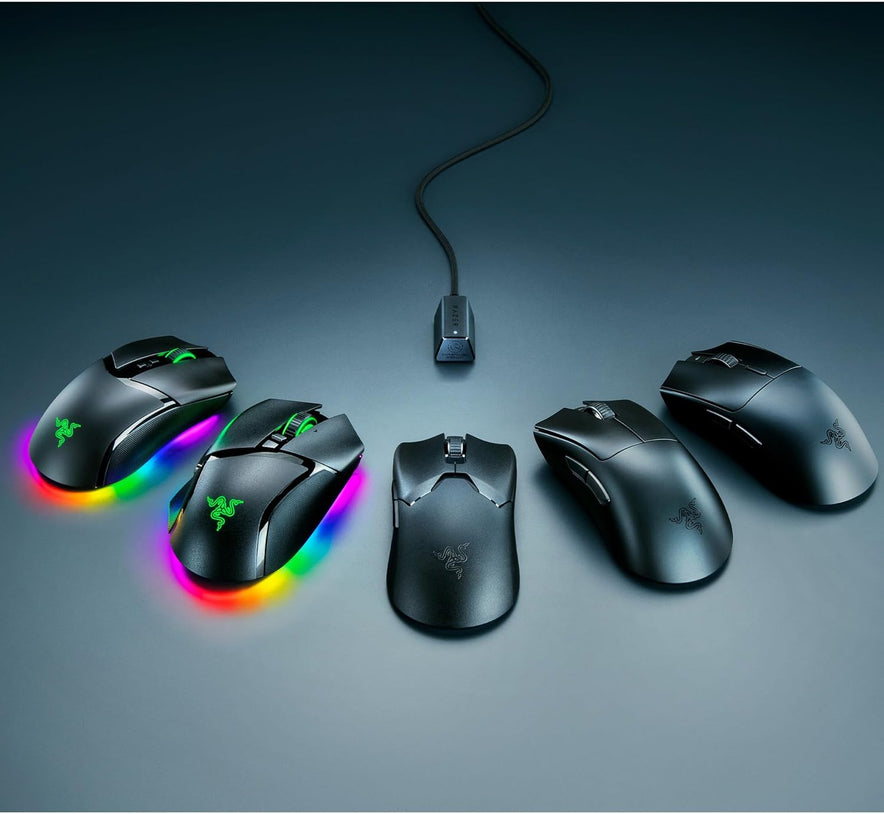 - Razer HyperSpeed Wireless Niedrige Latenz - Ultra kurze Reaktionszeit: Erlebe eine perfekte Verbindung, die immer flüssig und stabil bleibt, selbst in Umgebungen mit vielen kabellosen Geräten - Unterstützung mehrerer Geräte für ein minimalistisches Setup.