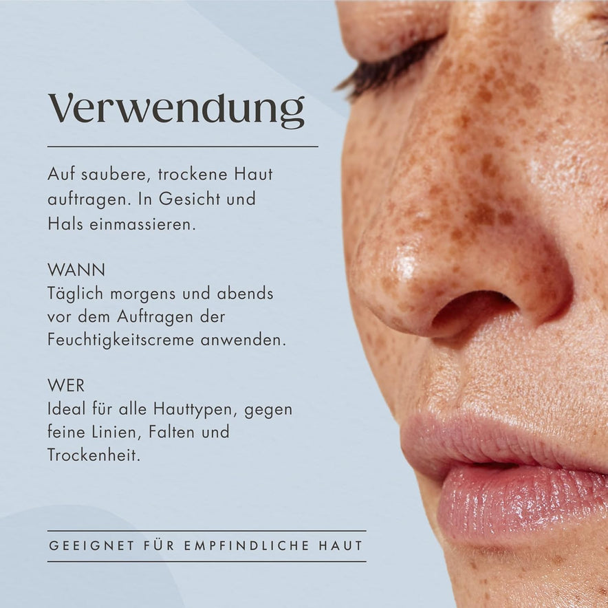 - 🍃 FEUCHTIGKEITSBOOSTER FÜR GESICHT & AUGENPARTIE – Sanfte Formel für empfindliche Haut. Ideal als Serum, Augenpflege oder Make-up-Basis. Wirkt gezielt gegen Trockenheit & müde Hautpartien.
