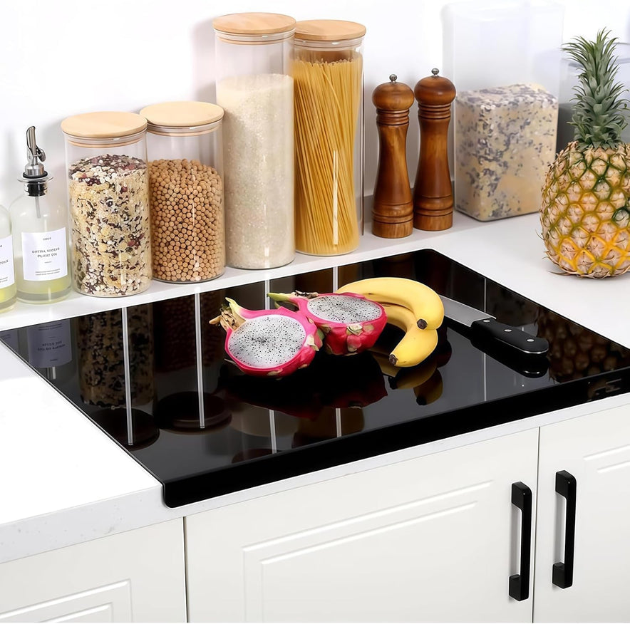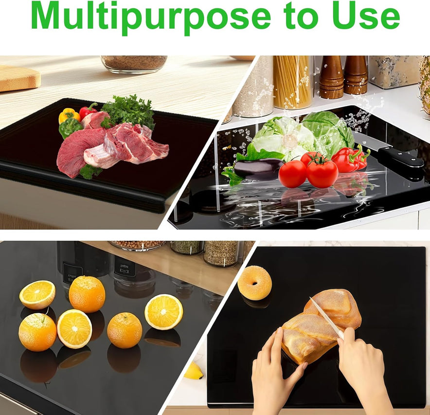 Acryl Schneidebretter 40x30CM, Arbeitsplatte KüChe, KüChenarbeitsplatte Arbeitsplattenschoner mit Anschlagkante, Durchsichtige und Anti-Rutsch Frühstücksbrettchen für die Küchentheke(Schwarz)