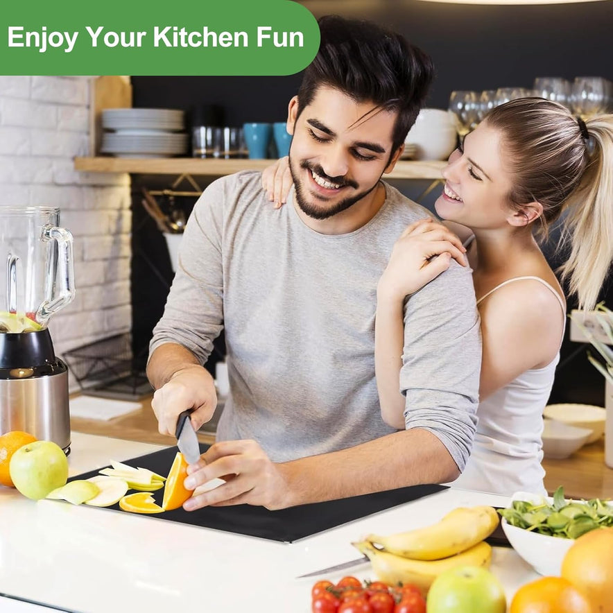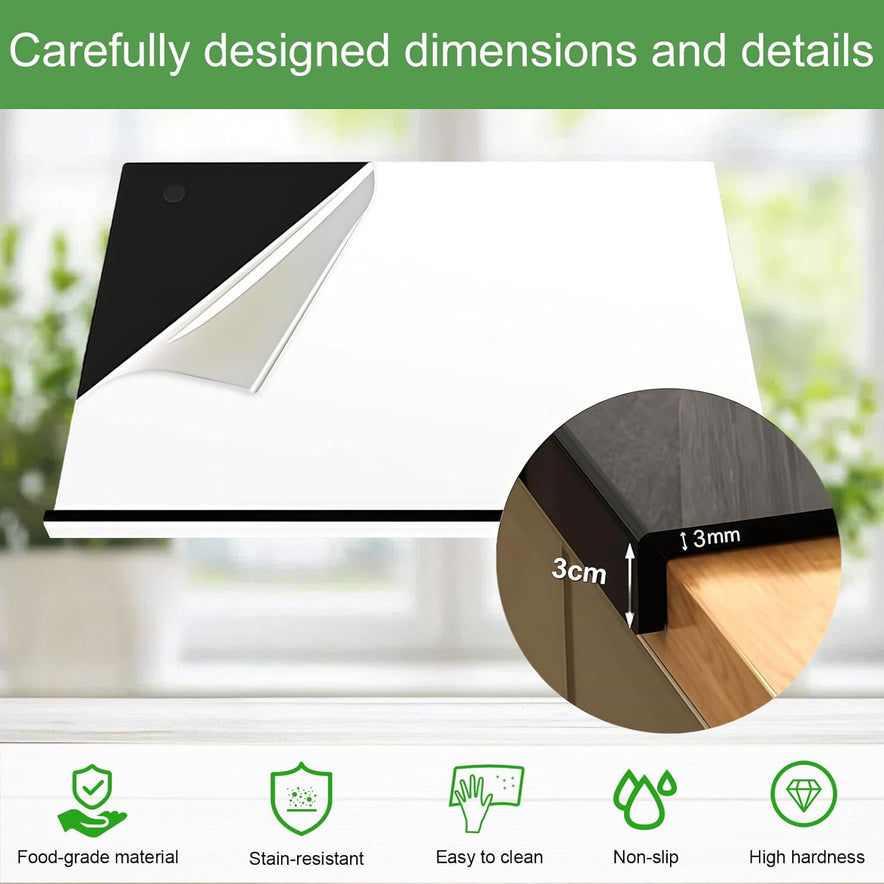 - 【Schutz der Arbeitsplatte】Die 40×30 cm große, 3 mm dünne Platte schützt Marmor und andere empfindliche Küchenarbeitsplatten vor Flecken. Die gebogene Kante leitet Speisereste direkt in den Müll. Ein unverzichtbares Küchenutensilien für eine saubere Küche!