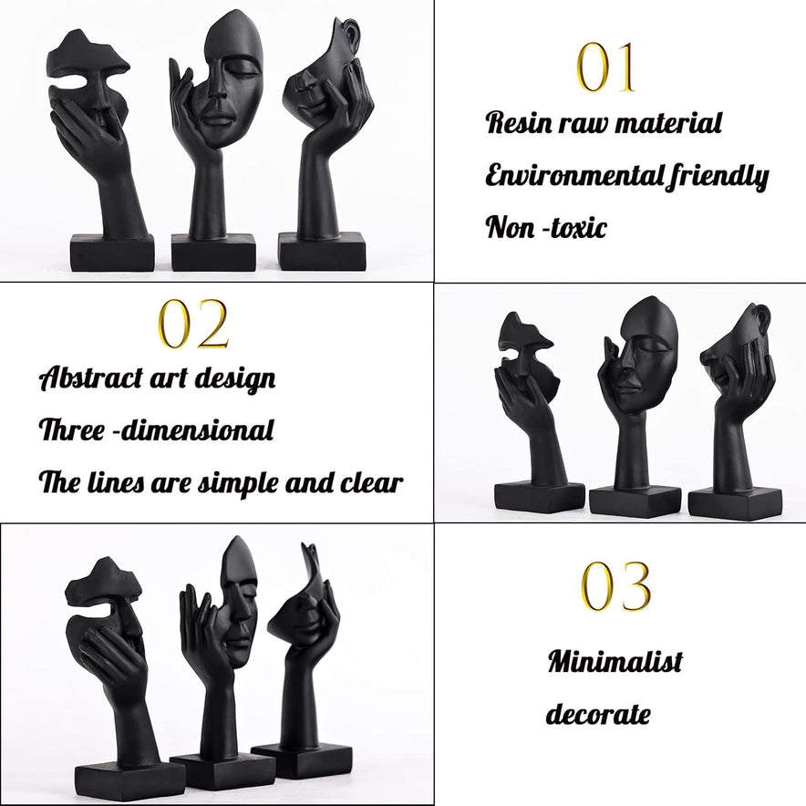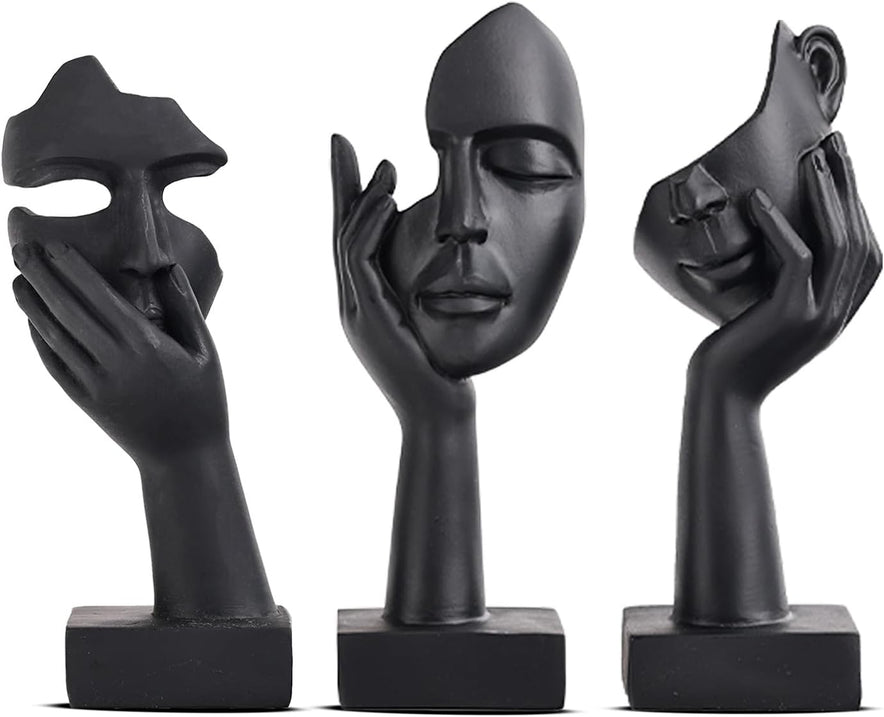 Schwarze Heimdekoration Akzentkunst Frau Gesicht Statue Sammlerstück Statue Für Modernes Zuhause Wohnzimmer Bücherregal Schwarz Schreibtisch Dekor 3-Teiliges Set