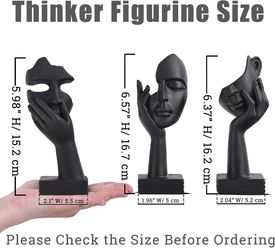- MATERIAL | GRÖSSE - Die weiblichen Gesichtsstatuen in Schwarzgold sind aus Harz gefertigt. Dieses Set aus drei verschiedenen Posen (15,2 cm, 16,7 cm, 16,2 cm H) mit einheitlichen 5,3 cm W-Profilen. Ihre absichtlich abwechslungsreichen Höhen schaffen dynamische Tiefe auf Regalen oder Schreibtischen, während kompakte Formen überlagerte Texturen verstärken und kühne abstrakte Kunst in kompakter Form hervorheben