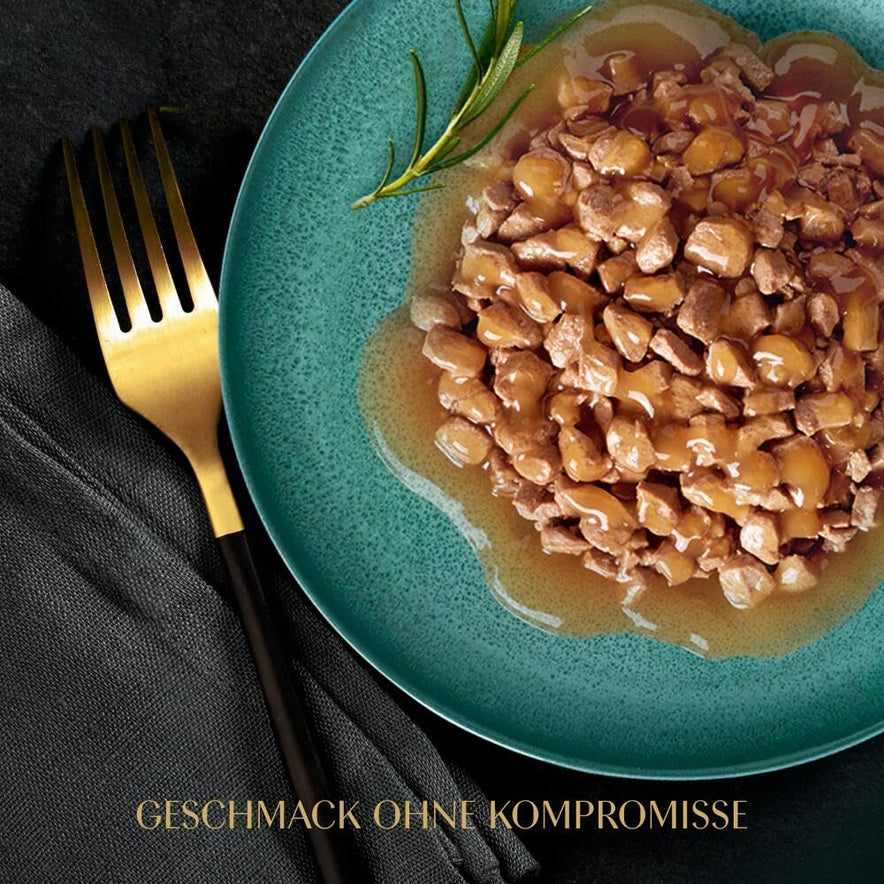 - Katzennassfutter in herzhafter Sauce, hergestellt mit natürlichen und hochwertigen Zutaten, die von unseren zuverlässigen Lieferanten bezogen werden