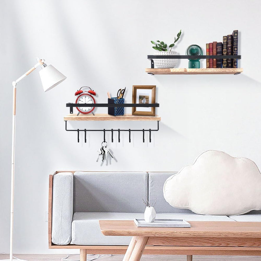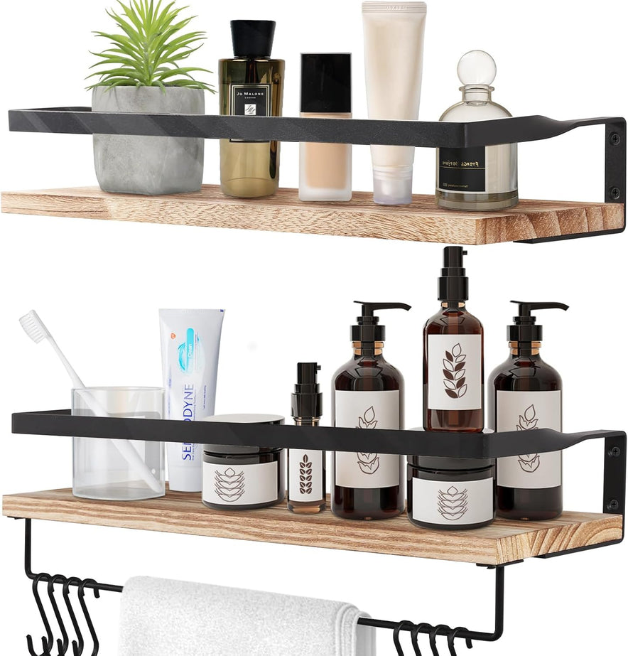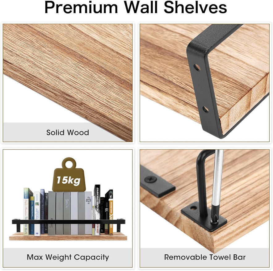 Uten Wandregal Holz, Schweberegal Rustikal Mit Handtuchhalter 2Er Set Hellbraun Für Schlafzimmer, Wohnzimmer, Badezimmer, Küche, Büro