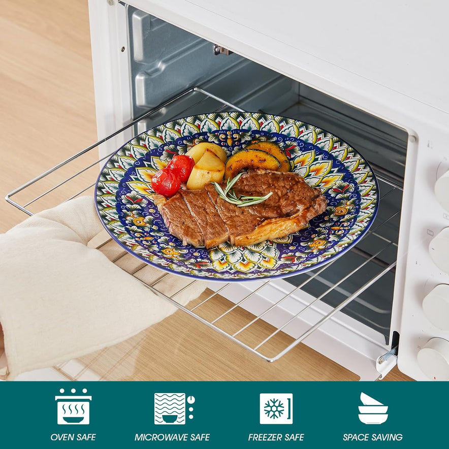 - 【Lebendiges und Farbenfrohes Design】Das 24-teilige Geschirr vancasso Bohemian zeichnet sich durch ein charmantes und kompliziertes Design aus, das die freigeistige Essenz der böhmischen Kultur widerspiegelt. Die lebendigen Farben und künstlerischen Muster rufen ein Gefühl der Freude und Positivität hervor und machen Ihr Esserlebnis lebendig und glücklich.