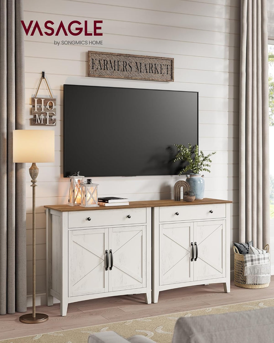 VASAGLE Küchenschrank, Sideboard Mit Schubladen, Aufbewahrungsschrank Mit Türen, Verstellbare Ablage, Landhausstil, Für Wohnzimmer Küche, 40 X 80 X 80 Cm, Vintageweiß-Honigbraun BBK341W01