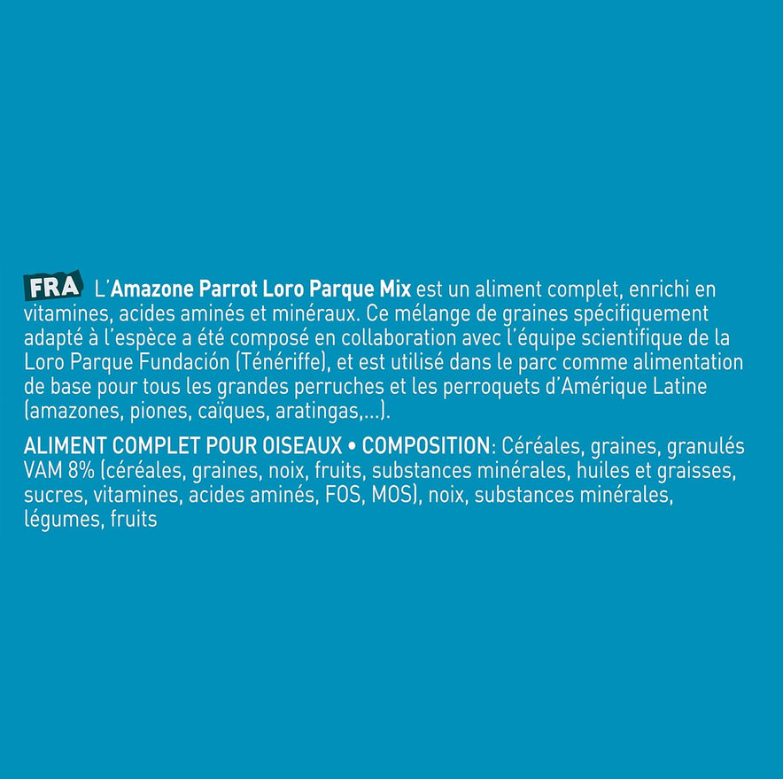 Produktbeschreibung Loro Parque Amazoni Versele Laga - 15 kg Allgemeine Angaben adult, Allgemeine Gesundheitserhaltung Inhaltsstoffe / Zutaten N.D. Gebrauchsanweisung Schütten Sie das Futter Ihrem Papagei in den Käfig.