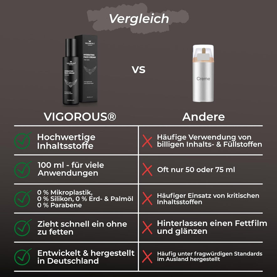 - ✔️ Entdecke die Ultimative Pflege für den modernen Mann - Die VIGOROUS Hydrating Face Cream gibt dir und deiner Haut alles was du brauchst! Sie bereitet dich vor, verleiht dir Energie und Frische, damit du jeder Herausforderung mit vollem Selbstbewusstsein entgegentreten kannst . Gönn dir nur das Beste - du hast es verdient!