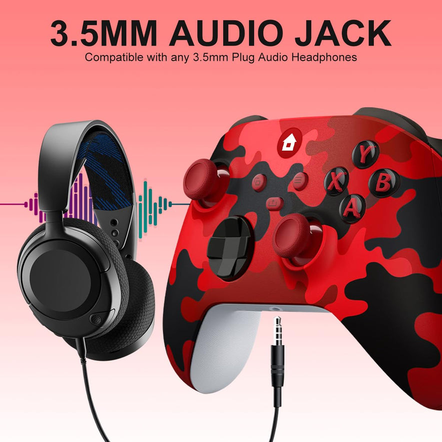 -25%Xbox Controller Wireless Für Xbox One, Xbox Series X/S, Xbox One X/S,Controller Mit 3.5Mm Kopfhörerbuchse,Mit 2.4Ghz Wireless Adapter,Camo Rot