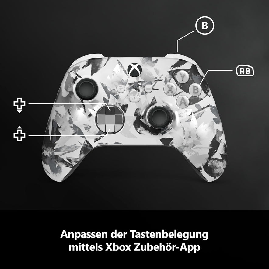 Hol mit der Breaker Special Edition-Serie das Beste aus dir heraus. Denn: Mit seinen klassischen Grau- und Schwarztönen, kombiniert mit Weiß, lässt sich der Storm Breaker durch nichts von seinem Stil abbringen. Mit den strukturierten Triggern hast du dein Ziel immer fest im Griff. Und dank der rutschfesten Griffe auf der Rückseite bist du jetzt mittendrin statt nur dabei. Koppeln, spielen und zwischen Geräten wie Konsole, PC und Cloud zu wechseln ist jetzt ein Kinderspiel.* *Windows 10/11: Erfordert Bluetooth, ein kompatibles USB-C-Kabel oder einen Xbox Wireless-Adapter. Diese sind separat erhältlich. Android, iOS und Bluetooth: Ausgewählte Geräte und Versionen. Einige Funktionen werden nicht unterstützt. Möglicherweise ist ein Software-Download über einen Windows-PC oder eine Konsole erforderlich. Weitere Informationen unter xbox.com/controller-compatibility. Zur Verwendung mit Controller-kompatiblen Spielen. *Siehe xbox.com/controller-compatibility für weitere Informationen. Zur Verwendung mit Controller-kompatiblen Spielen. Die Akkulaufzeit hängt stark von verwendeten Headsets, weiterem Zubehör, der Nutzung und anderen Faktoren ab. Die Tests wurden von Microsoft mit Standard-AA-Batterien in Vorseriengeräten durchgeführt. Tastenbelegung über Xbox Zubehör-App für Xbox Series X|S, Xbox One und Windows 10/11 verfügbar. Die App für Windows 10/11 erfordert ein kompatibles USB-C-Kabel (separat erhältlich). *Erfordert Xbox Game Pass Ultimate (separat erhältlich), die Xbox App, die Xbox Cloud Gaming-App und einen unterstützten Controller (separat erhältlich) oder Zugriff auf Xbox.com/play. Gerät eines Drittanbieters abgebildet. Die angezeigten Spiele sind demnächst verfügbar; der Katalog variiert je nach Region und Tarif. Siehe Xbox.com für weitere Informationen. *Xbox Cloud Gaming (Beta) erfordert ein Game Pass Ultimate-Abonnement und ein unterstütztes Gerät (beides separat erhältlich). Cloudfähige Spiele, die nicht in Game Pass Ultimate enthalten sind, werden separat verkauft und können zu einem späteren Zeitpunkt mit Game Pass Ultimate verfügbar sein. Spielekatalog variiert. Streame auf unterstützten Geräten und Smart-TVs mit der Xbox App. Wähle Regionen (xbox.com/regions) und Geräte unter xbox.com/cloud-devices aus. Siehe Cloud Gaming-Katalog (xbox.com/play).